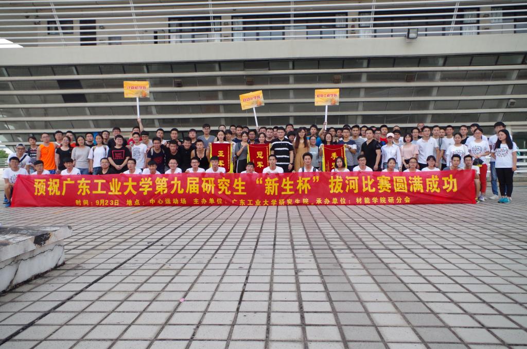 2017年9月23日,由材能MK体育·(国际)官方网站研分会举办的第九届广东工业大学研究生“新生杯”拔河比赛在大学城中心运动场成功举行,我校三个校区的12个MK体育·(国际)官方网站研究生代表队完美诠释了“积极、团结、奋进、健康”的比赛宗旨。参赛选手激情满怀,啦啦队神采奕奕,给拔河比赛注入了青春与活力,最终我院选手齐心协力,奋力拼搏,成功卫冕冠军。